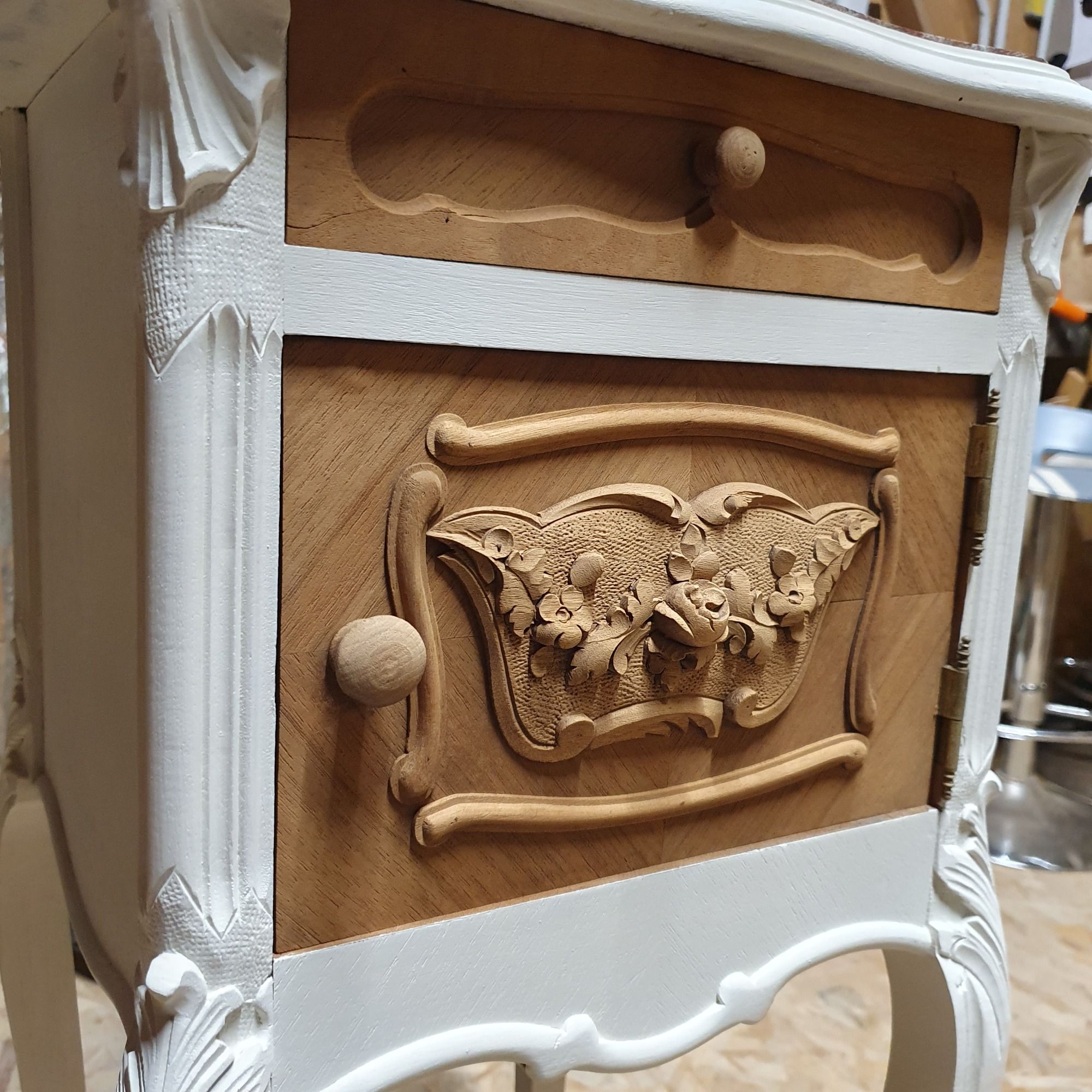 Commande personnalisée pour l'upcycling d'un buffet en chêne massif pour un particulier.