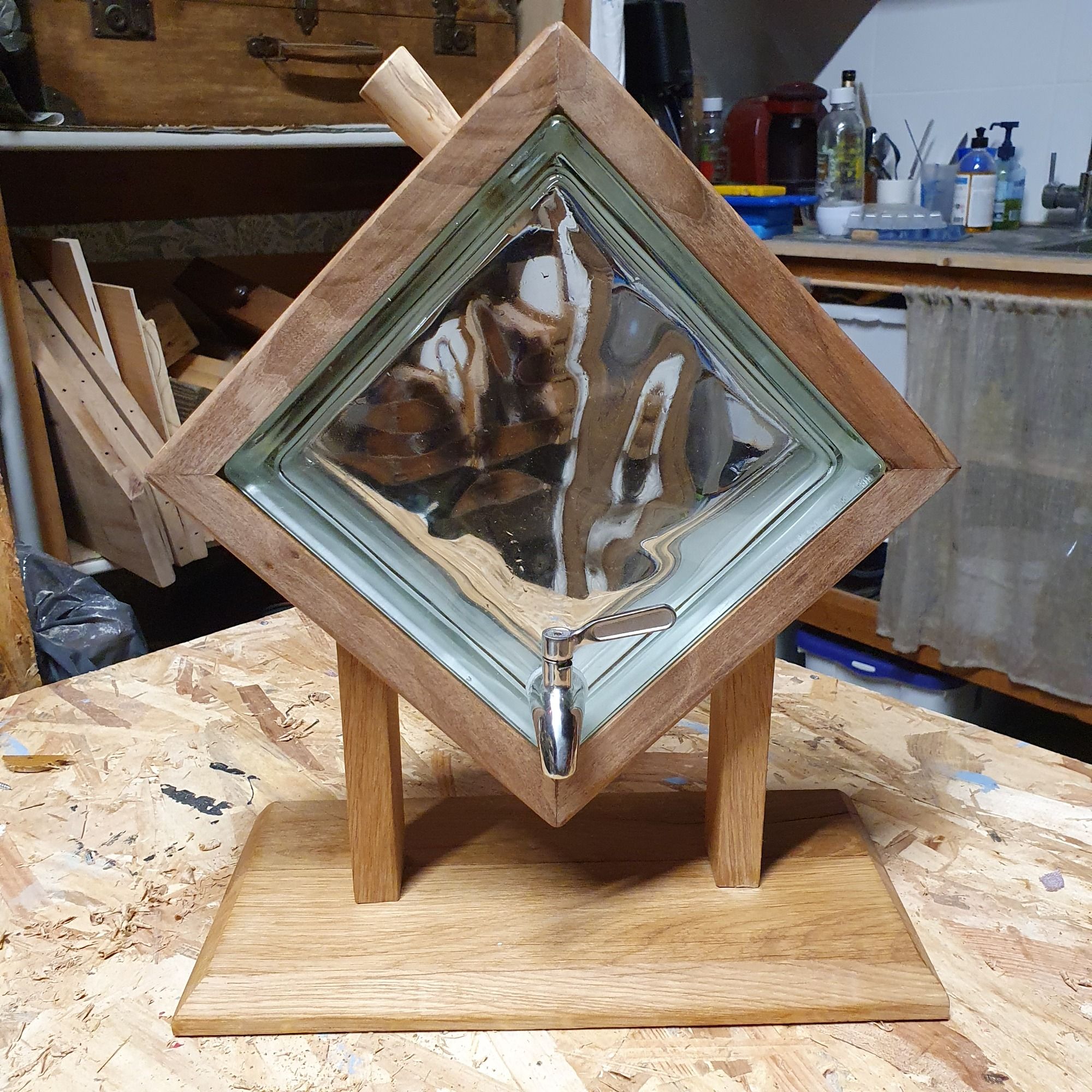 Upcyling d'un ancien dessus de buffet. 90 % des éléments du meuble de base ont été réutilisés pour ce Mini Bar.